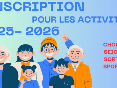 Inscriptions aux activités et aux sorties 2025 / 2026 les 16 – 17 – 18 septembre 2025 de 15h à 18h ! 🥳